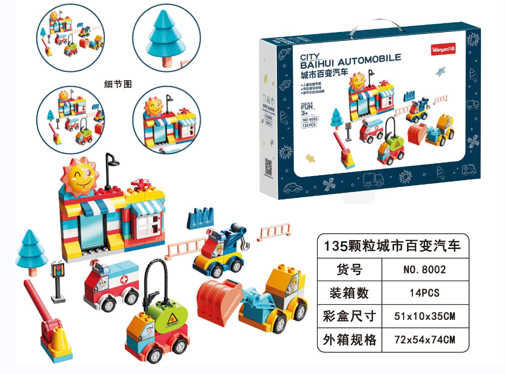品 名:135顆粒城市百變汽車